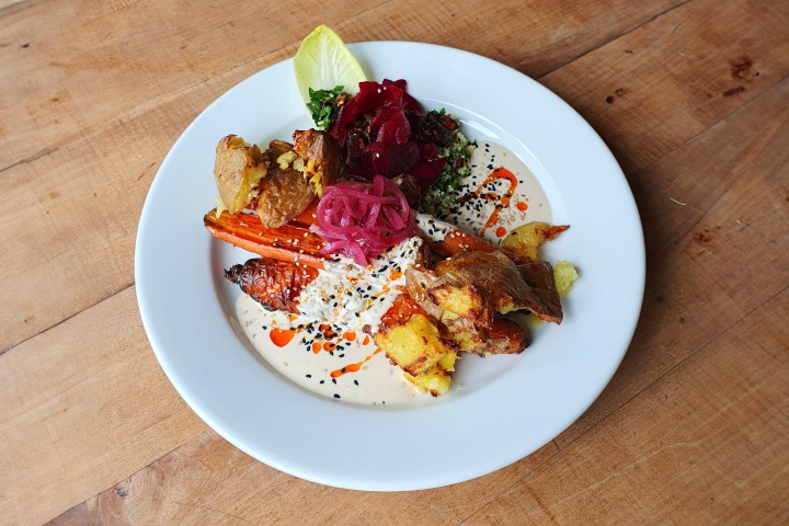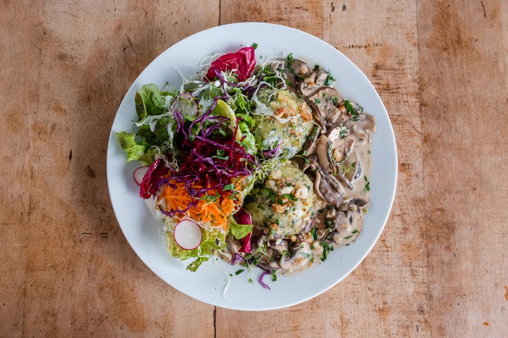 Unsere Gerichte gibt es vorwiegend vegan, vegetarisch und ab und an wahlweise mit Fleisch.